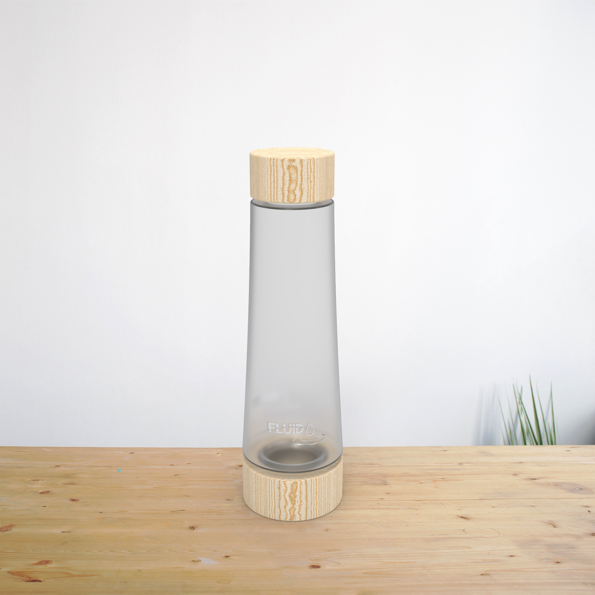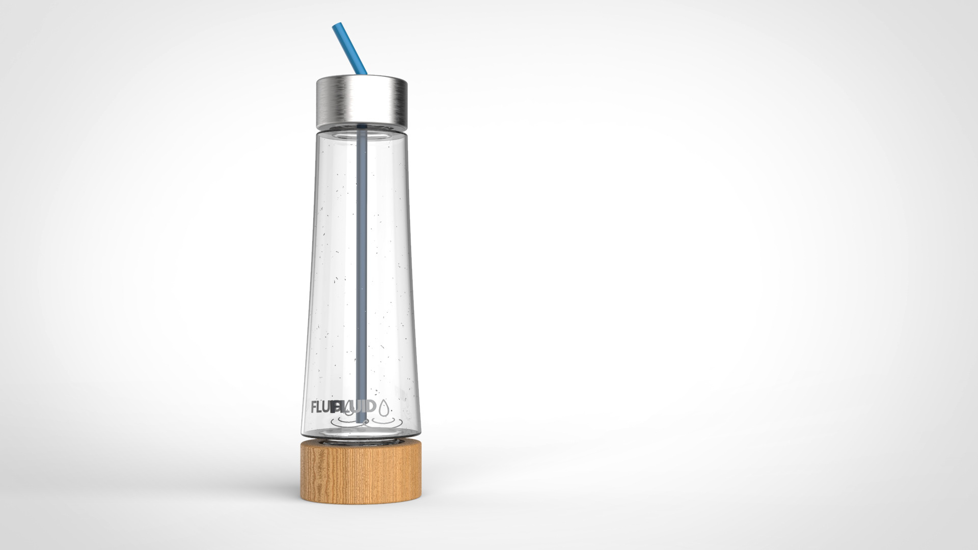 The concept for fluid is to have a water bottle where every part is replaceable and removable; the lid, the base, the bottle body, and the straw.